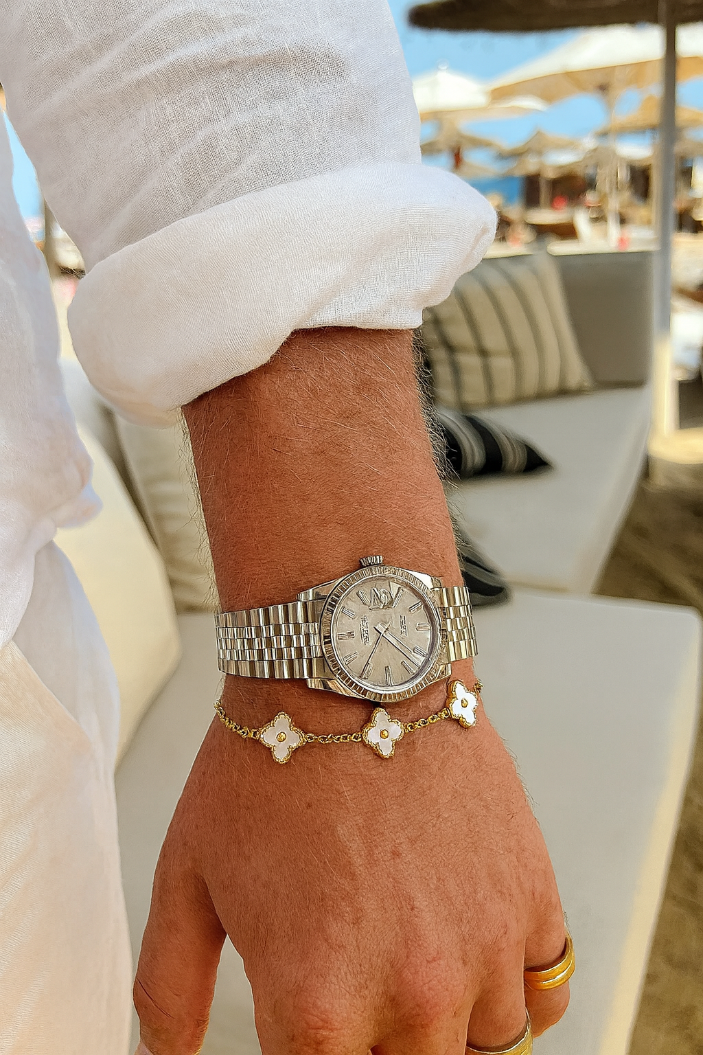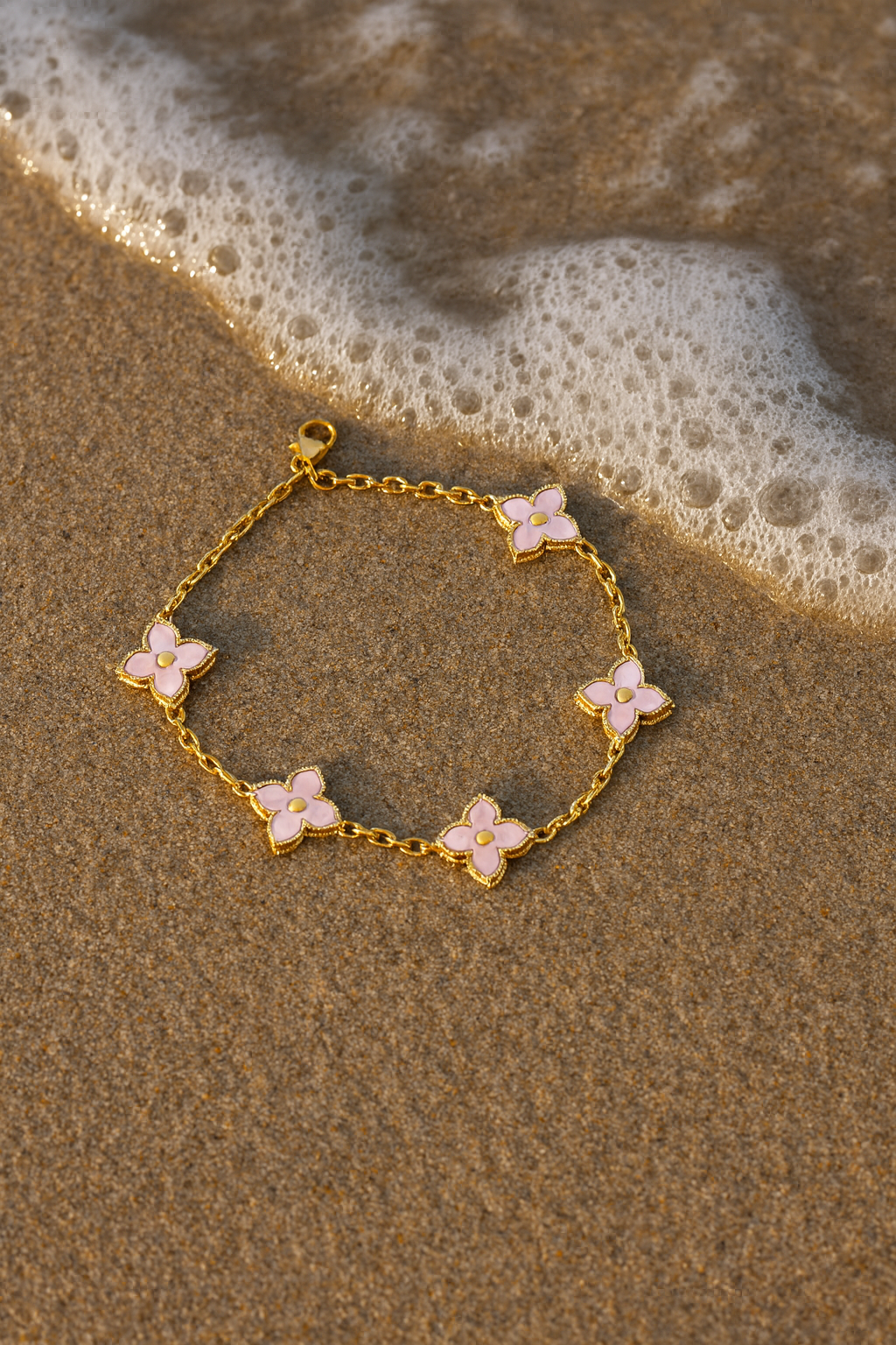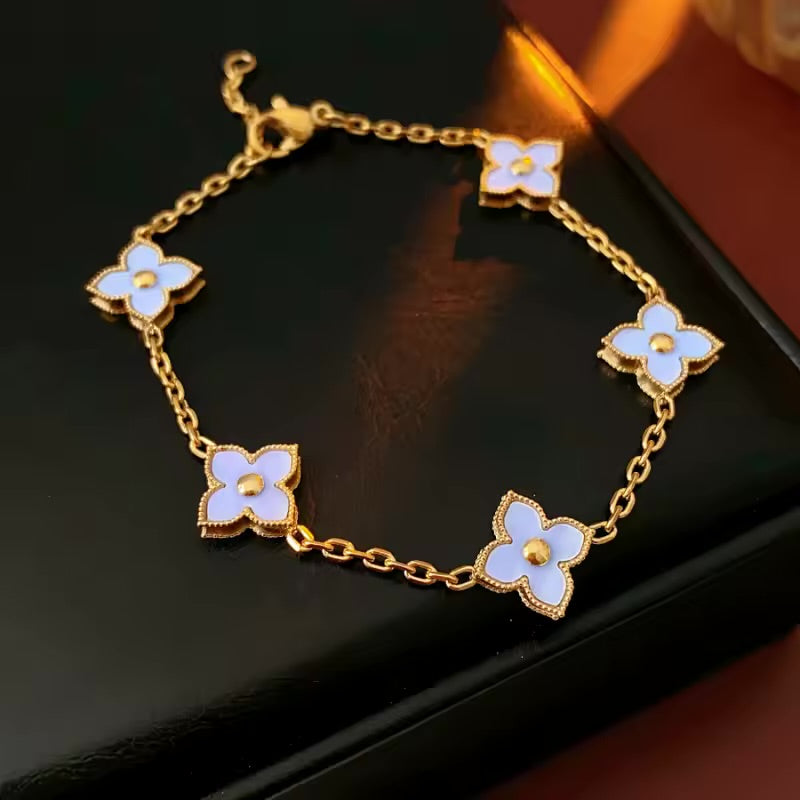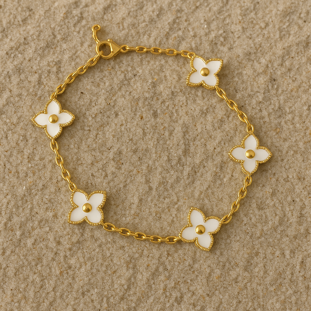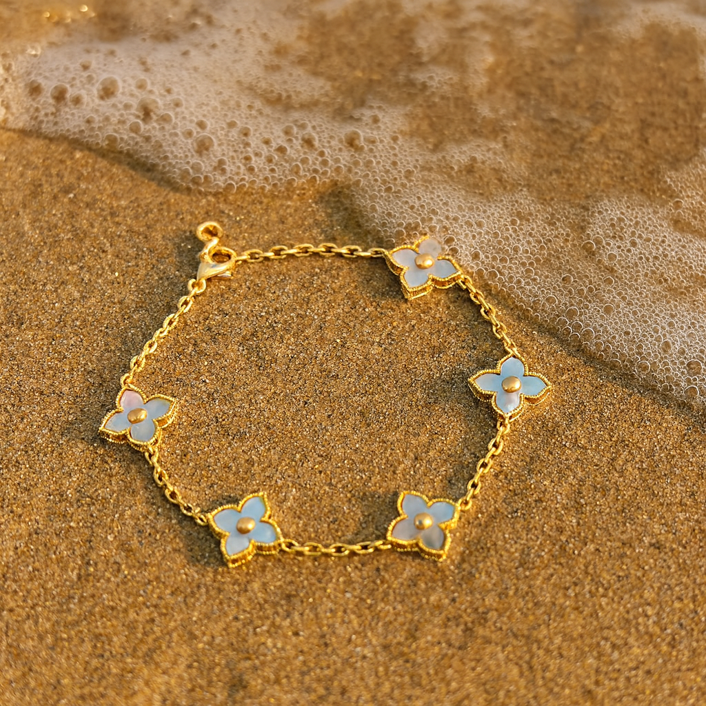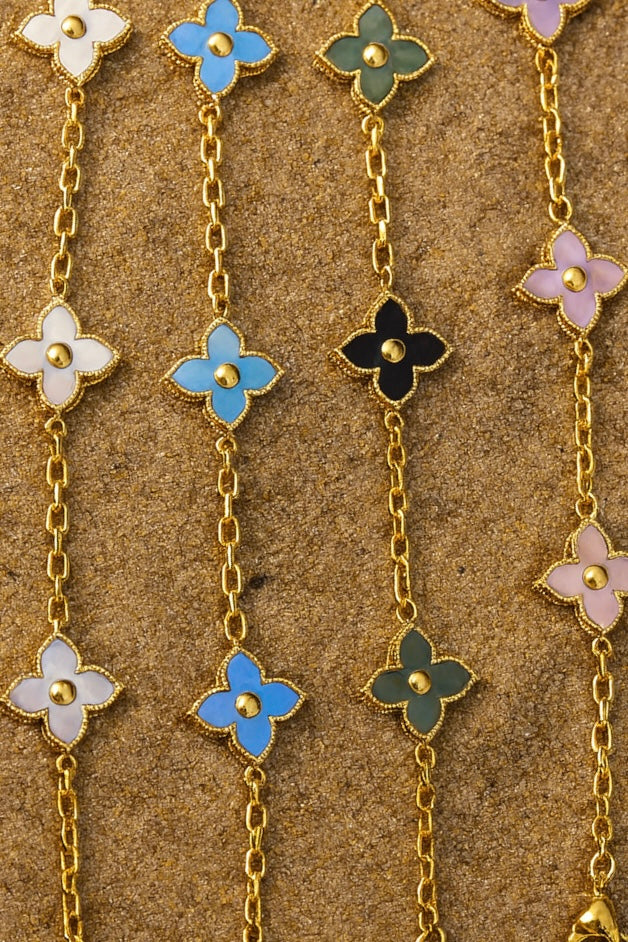 Natural Shell Stone Flower Bracelet - Stainless Steel